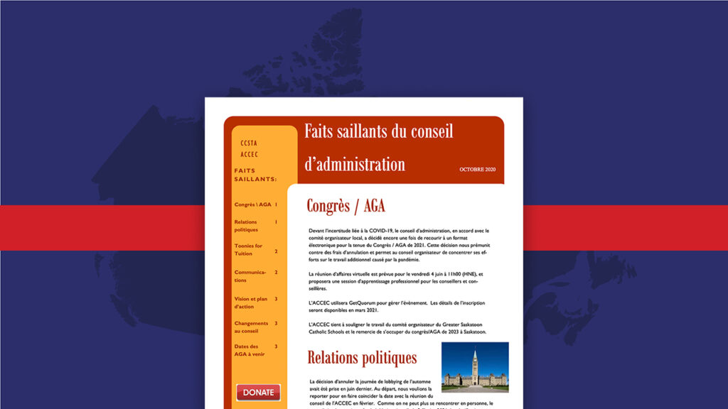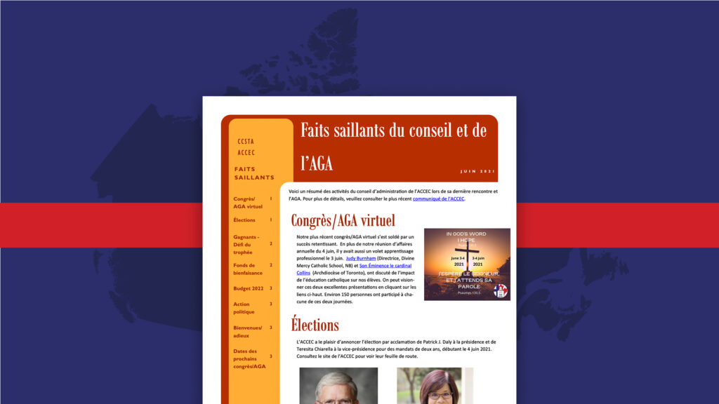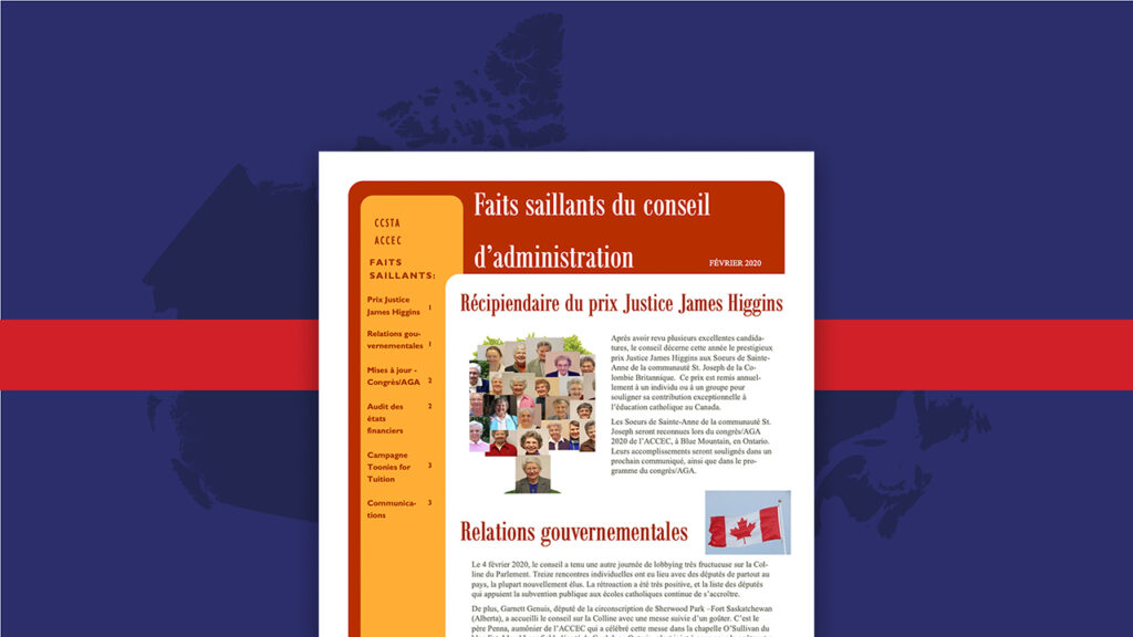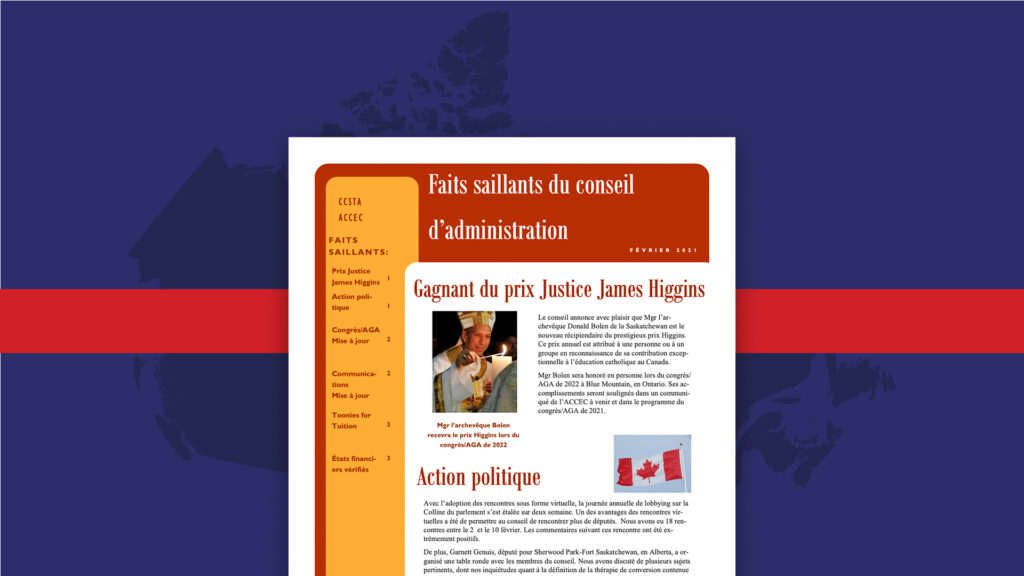 Vous pourrez rester au fait des succès, des rapports provinciaux, et de tout ce qui concerne l’éducation catholique au Canada.